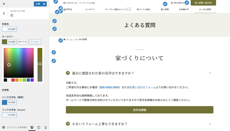 Lightningに搭載されているキーカラーの設定から、サイト全体のメインカラーを一括で簡単に変えることができます。