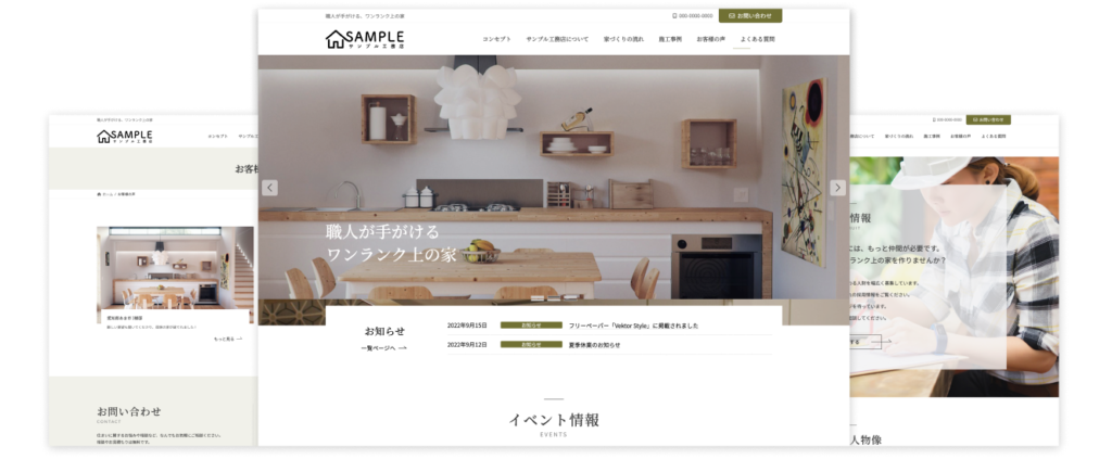 たとえば、こちらの工務店デモサイトは、人気 WordPress テーマ X-T9 および