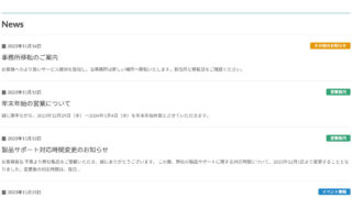 トップページ用 お知らせ一覧 (日付とタイトルと抜粋)