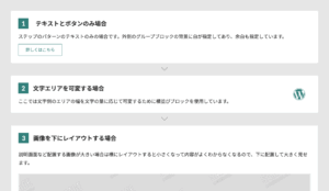 このパターンではテーマ「X-T9」「Lightning ( G3 / theme.json )」での使用を想定しています。他のテーマでは崩れる可能性がありますのでご注意ください。