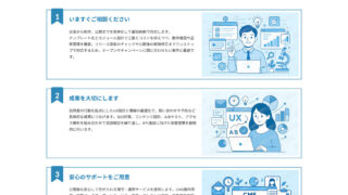 このパターンではテーマ「X-T9」「Lightning ( G3 / theme.json )」「Twenty Twenty-Five」「Twenty Twenty-Four」「Twenty Twenty-Three」での使用を想定しています。他のテーマでは崩れる可能性がありますのでご注意ください。